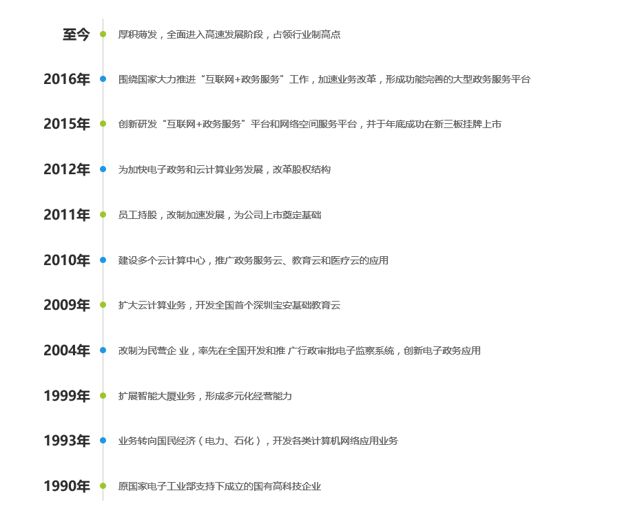 2015年太極數(shù)智承建的佛山市、深圳市寶安區(qū)“互聯(lián)網(wǎng)+政務(wù)服務(wù)”平臺(tái)獲得多個(gè)口碑獎(jiǎng)項(xiàng),并在國(guó)務(wù)院辦公廳《關(guān)于轉(zhuǎn)發(fā)國(guó)家發(fā)展改革委等部門推進(jìn)“互聯(lián)網(wǎng)+政務(wù)服務(wù)”開展信息惠民試點(diǎn)實(shí)施方案的通知》(國(guó)辦發(fā)〔2016〕23號(hào))文件中均有提及。其中佛山市自然人/法人智慧政務(wù)服務(wù)平臺(tái)成為全國(guó)一門式一網(wǎng)式服務(wù)改革的典型案例,在全國(guó)各省市推廣;而深圳寶安“互聯(lián)網(wǎng)+政務(wù)服務(wù)”平臺(tái)率先實(shí)現(xiàn)全部服務(wù)事項(xiàng)的“100%網(wǎng)上申報(bào)、100%網(wǎng)上審批”,實(shí)現(xiàn)個(gè)人辦事不出街道、企業(yè)辦事不出區(qū)。 經(jīng)過20多年的歷練,太極數(shù)智已打造了覆蓋全國(guó)20多個(gè)省(600多個(gè)政府客戶)的智慧政務(wù)服務(wù)成功案例。在互聯(lián)網(wǎng)+政務(wù)服務(wù)、大數(shù)據(jù)共享交換、移動(dòng)政務(wù)服務(wù)、綜合紀(jì)檢監(jiān)察、智慧政務(wù)終端、政務(wù)專業(yè)應(yīng)用、互聯(lián)網(wǎng)+基礎(chǔ)教育等領(lǐng)域具有全系列核心成熟產(chǎn)品。太極數(shù)智已成為典型互聯(lián)網(wǎng)應(yīng)用型國(guó)家高新技術(shù)企業(yè),是我國(guó)云應(yīng)用先導(dǎo)企業(yè)和互聯(lián)網(wǎng)+政務(wù)服務(wù)領(lǐng)軍企業(yè),并于2015年11月成功在新三版掛牌上市(股票代碼:834127)。